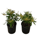 Il Pieris Forest Flame è un elegante arbusto sempreverde, noto per le sue foglie giovani di colore rosso fuoco che contrastano con quelle adulte verde scuro. Produce grappoli di piccoli fiori bianchi a campanula in primavera. Perfetto per bordure, aiuole o vasi.